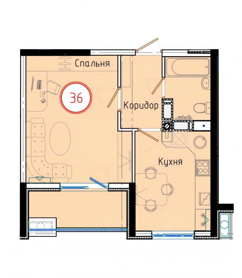 Продаётся 1-комнатная квартира в сданном доме (Литер 3), срок сдачи: IV-кв. 2023, общей площадью 42.3 кв.м., на 6 этаже.