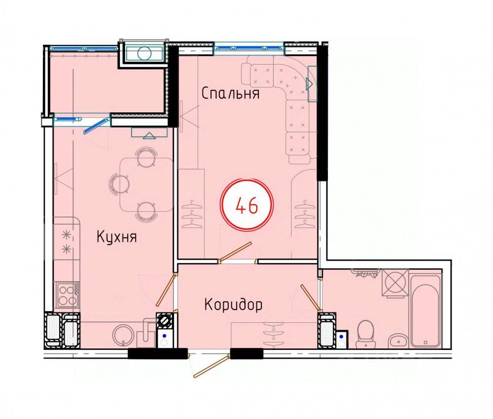 Продаётся 1-комнатная квартира в сданном доме (Литер 3), срок сдачи: IV-кв. 2023, общей площадью 41.4 кв.м., на 7 этаже.