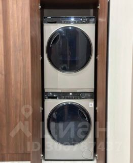 В гардеробной установлены стиральная машина и сушильная машина, что опять же создает уют , без нагромождения обычной сушки для белья