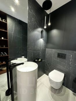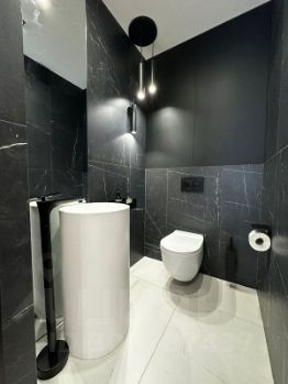 В ванной комнате и санузле стоят каменные раковины , не акрил