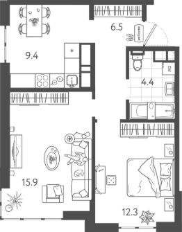Продаётся 2-комнатная квартира в сданном доме (Литер 8), срок сдачи: III-кв. 2024, общей площадью 48.5 кв.м., на 4 этаже. Добрососедский квартал "Все свои"
