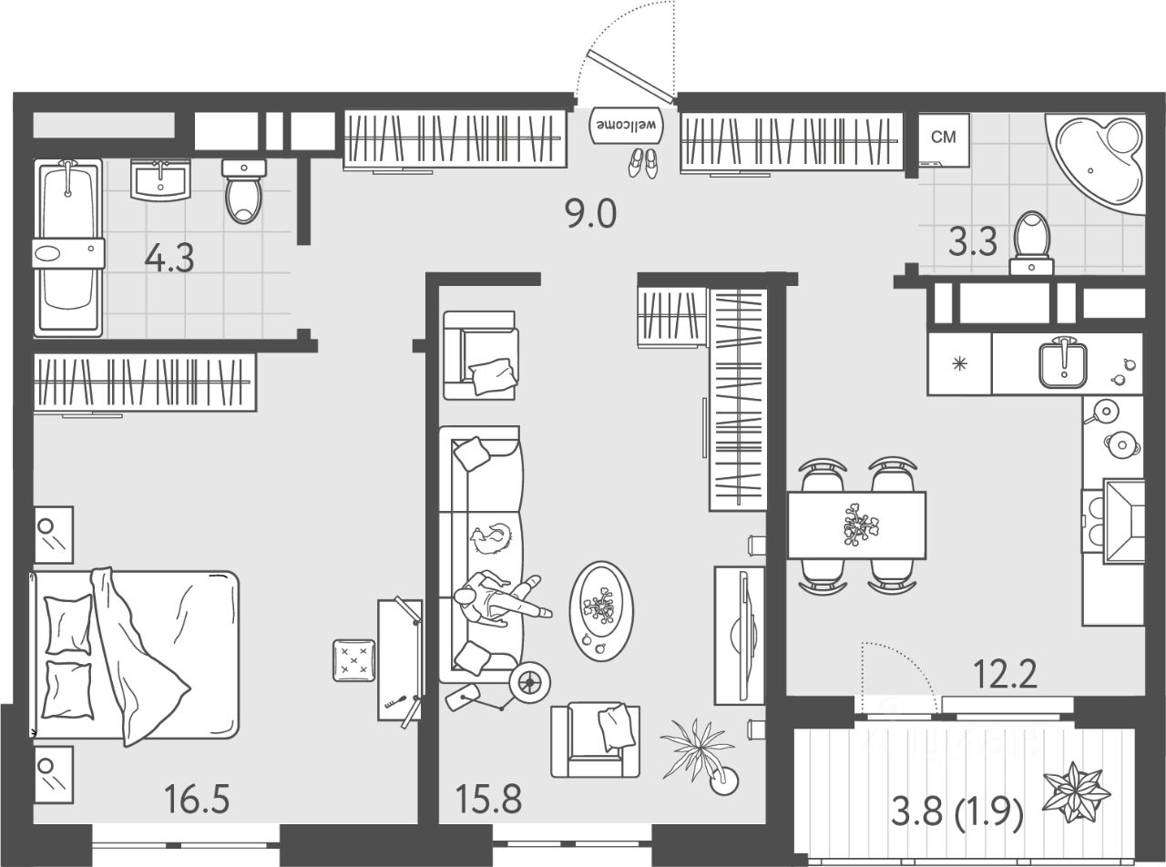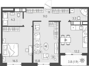 Продаётся 2-комнатная квартира в сданном доме (Литер 8), срок сдачи: III-кв. 2024, общей площадью 61.1 кв.м., на 4 этаже. Добрососедский квартал "Все свои"