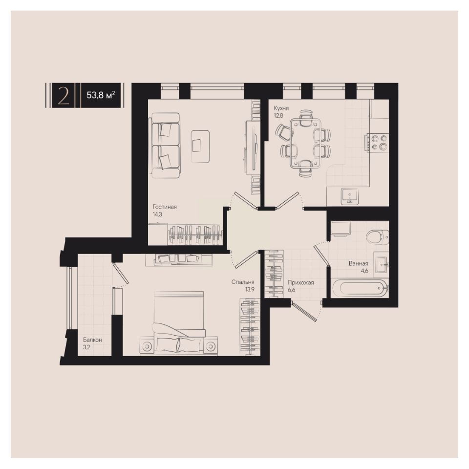 Общая площадь53,8 м²