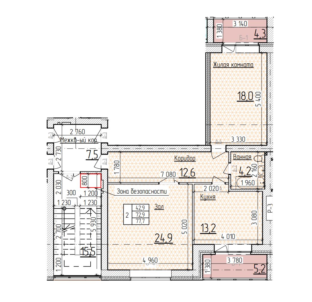 Продаётся 2-комнатная квартира в строящемся доме (Дом 2), срок сдачи: III-кв. 2026, общей площадью 77.7 кв.м., на 4 этаже. ЖК Фестивальный, 4 кв. 2026, ул. Фестивальная 15.