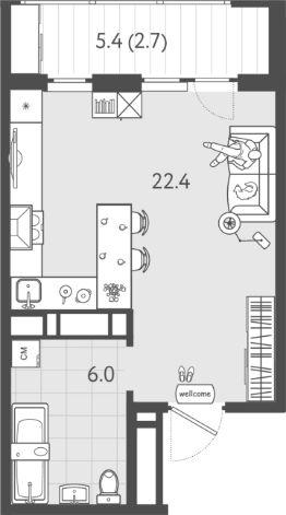 Продаётся студия в сданном доме (Литер 8), срок сдачи: III-кв. 2024, общей площадью 31.1 кв.м., на 21 этаже. Добрососедский квартал "Все свои"