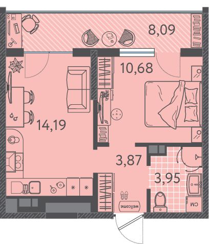 Жилая площадь10,7 м²