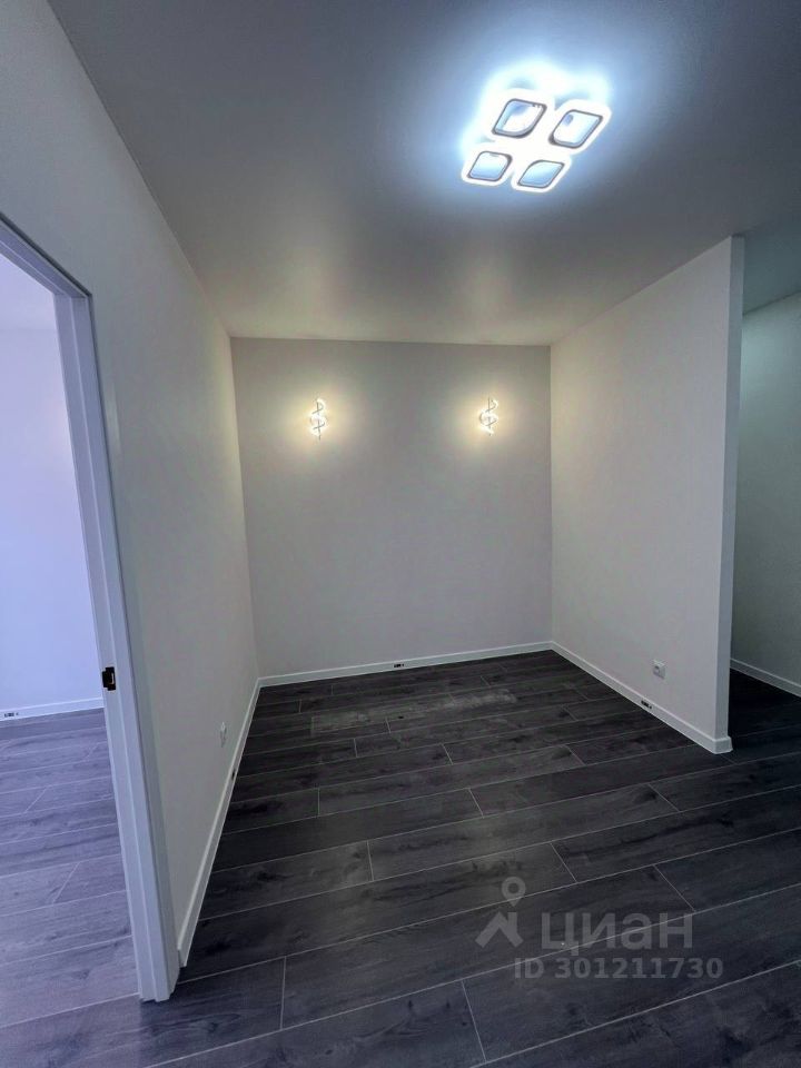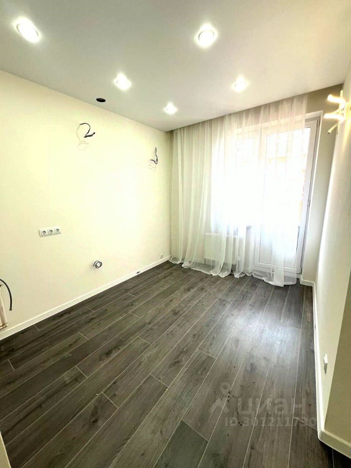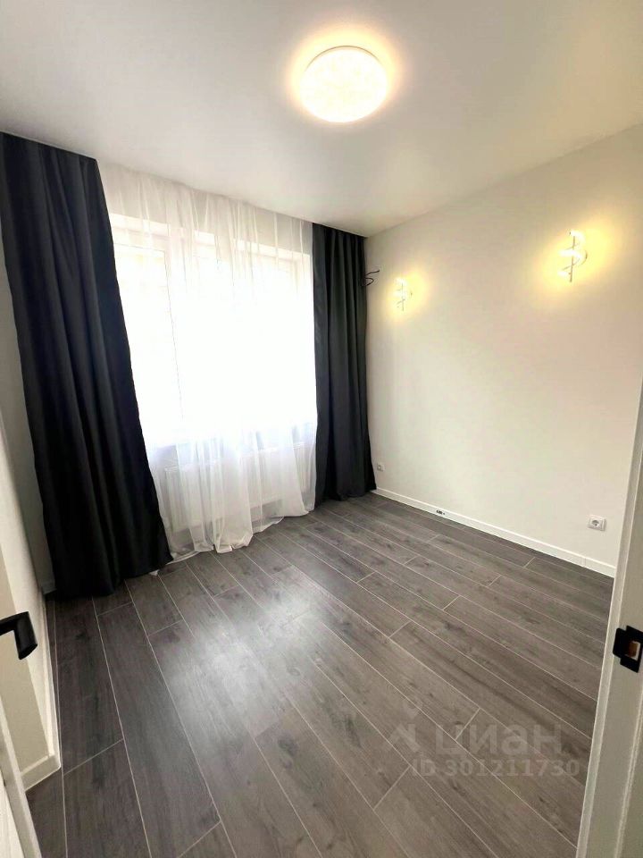 В квартире выполнен ремонт в светлых и спокойных тонах. Хорошая планировка с комнатой правильной прямоугольной формы и просторной кухней. Есть выделенная зона под гостиную и гардеробную. Санузел совмещен, установлена новая качественная сантехника. С кухни есть выход на застекленную лоджию.