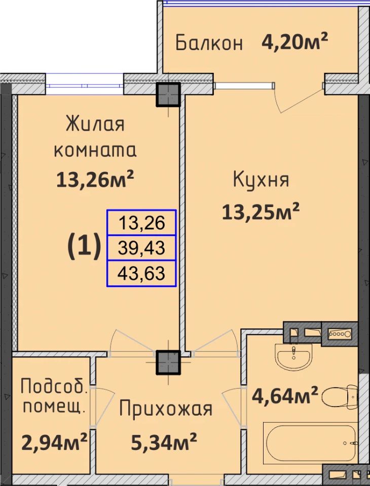 Продаётся 1-комнатная квартира в строящемся доме (Секция 1,2), срок сдачи: I-кв. 2026, общей площадью 43.63 кв.м., на 2 этаже. Новый жилой комплекс "Восточный" от застройщика "СЗ СОЛНЕЧНЫЙ ГОРОД" расположен по адресу Краснодарский край, Абинск, Казанская улица, 9.