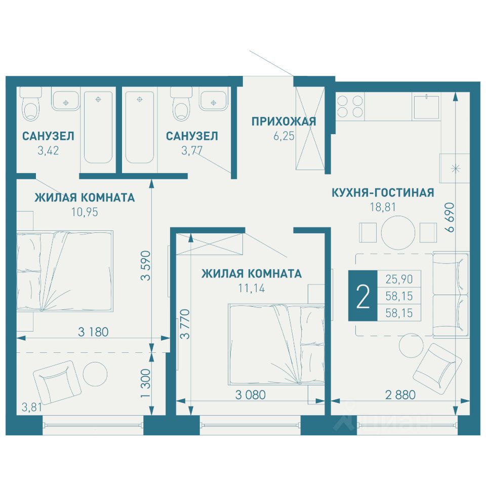 Продается 2 комнатная квартира площадью 58.15 кв. м. на 15 этаже 18 этажного дома, 1 подъезд, номер 167. Стоимость данного лота включает в себя ремонт, мебель и технику. Будут представлены 3 варианта обустройства квартиры: светлый, тонированный и авторский. Для более подробного ознакомления вы можете обратиться в отдел продаж. Жилой комплекс "ИНАЧЕ в Молодежном" включает в себя 14 домов комфорт+ класса переменной этажности с более чем 100 видами планировок, в том числе квартиры с террасами, двухуровневые квартиры и урбан виллы, детский сад на 350 мест, храм, 2 наземных паркинга, а также бульвар и прогулочные аллеи. Срок сдачи первой очереди 4 квартал 2026 года Жилой комплекс находится в Молодежном — тихом микрорайоне с атмосферой размеренной жизни. Рядом расположен зеленый сквер "Изумрудный" с зелеными деревьями и велодорожками.
