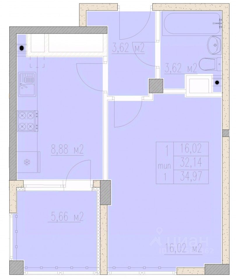34,97 м²