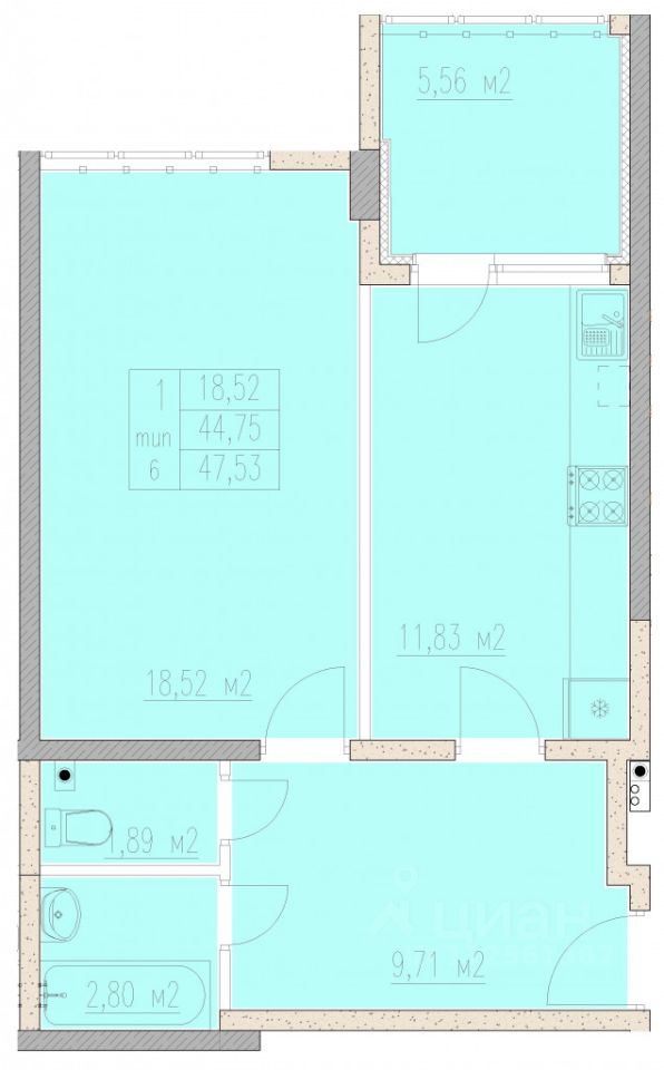 47,53 м²