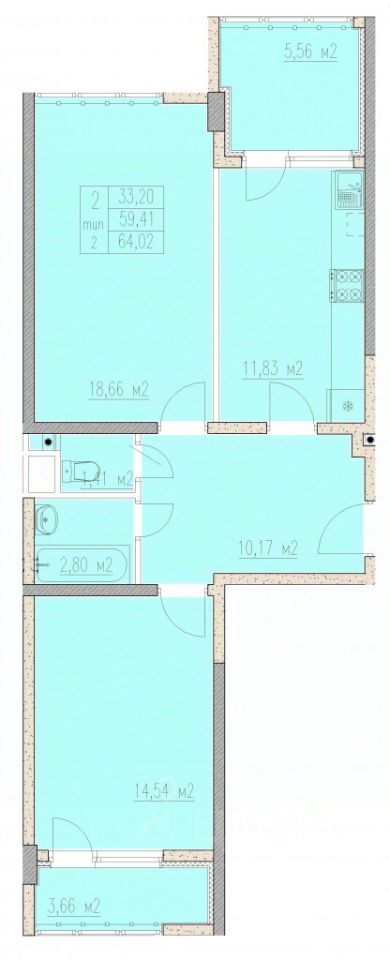 64,02 м²