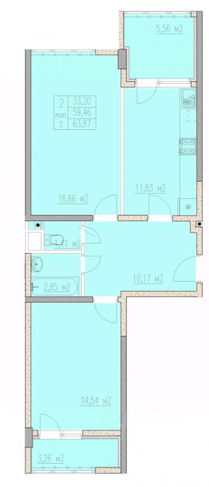 63,87 м²