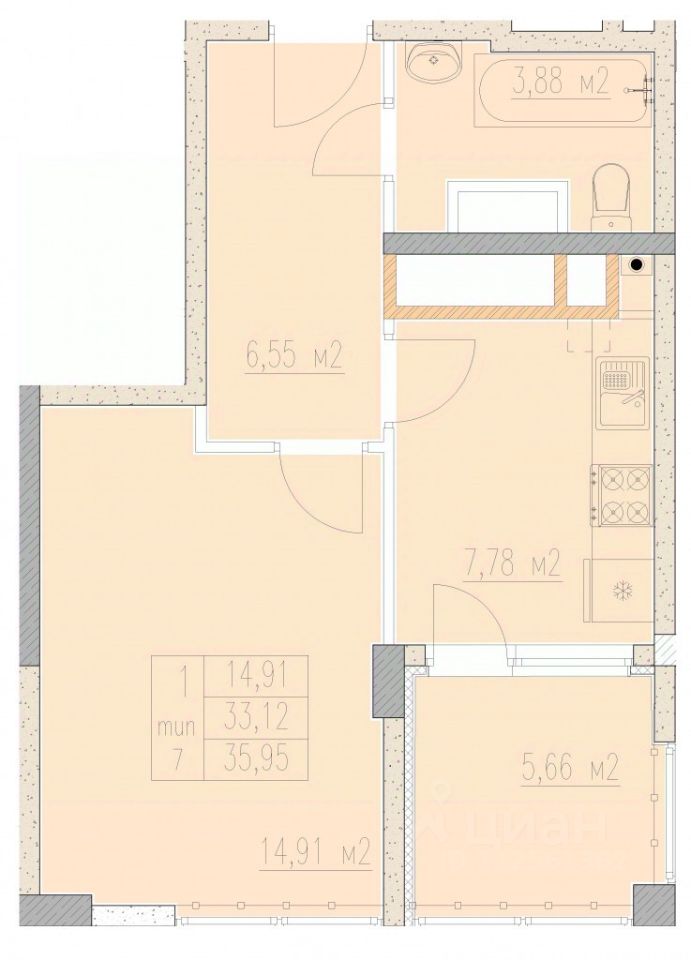 35,95 м²