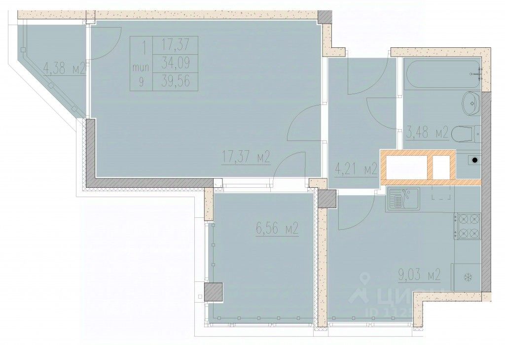 39,56 м²