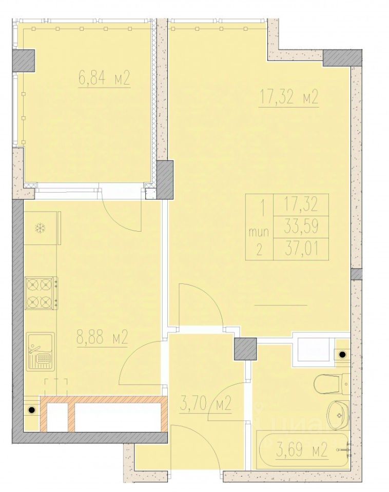 37,01 м²