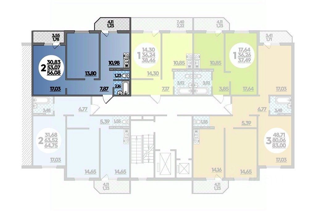 Общая площадь56,08 м²