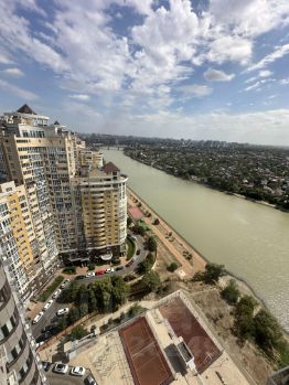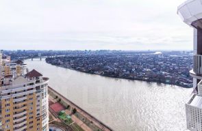 В квартире высокие потолки и витражное остекление в каждой комнате, с потрясающими видами на город, реку и горы. На 4 изолированных спальни есть 4 санузла, 2 гардеробные и просторная кухня гостиная.