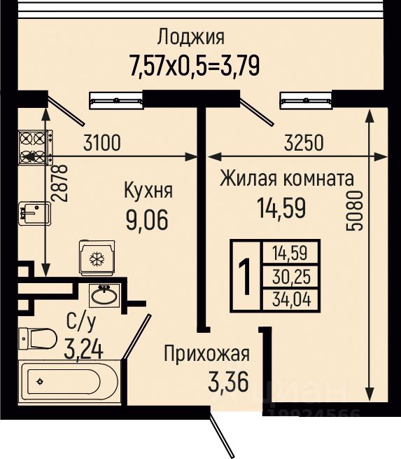 34,04 м²