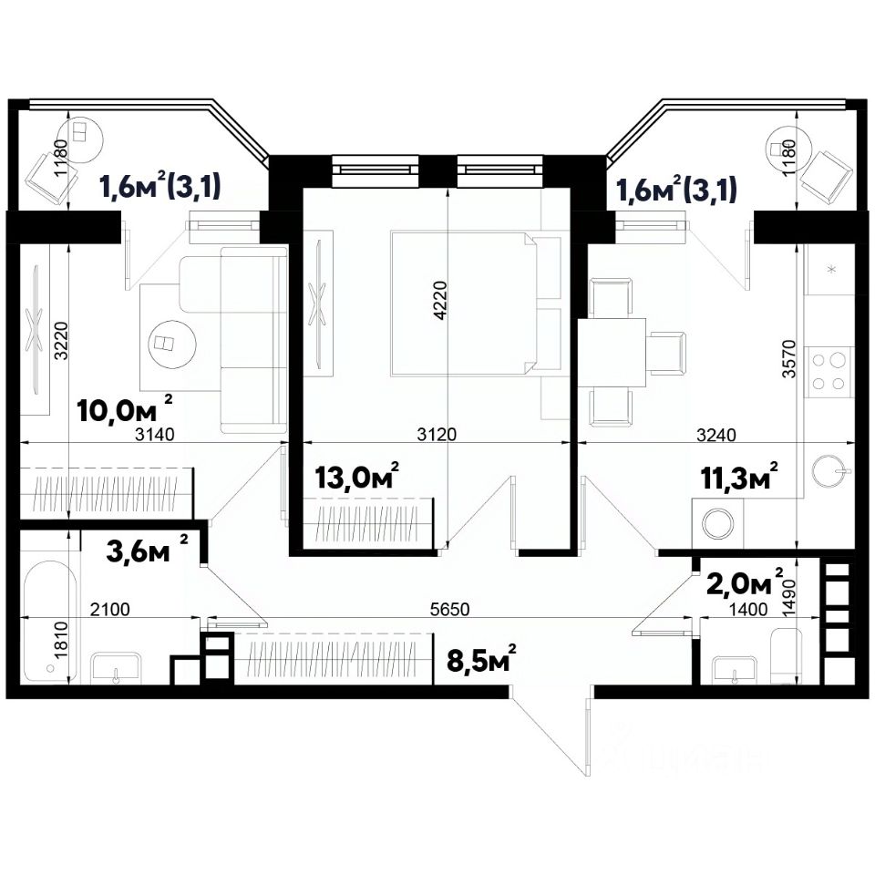 Продаётся 2-комнатная квартира в сданном доме (Литер 2.7), срок сдачи: IV-кв. 2024, общей площадью 51.6 кв.м., на 5 этаже. Расположение, транспортная доступность