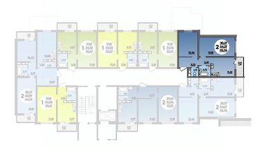 Продаётся 2-комнатная квартира в сданном доме (Корпус 1), срок сдачи: IV-кв. 2024, общей площадью 55.36 кв.м., на 9 этаже.