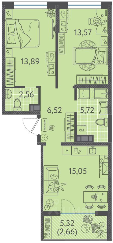 Общая площадь59,35 м²