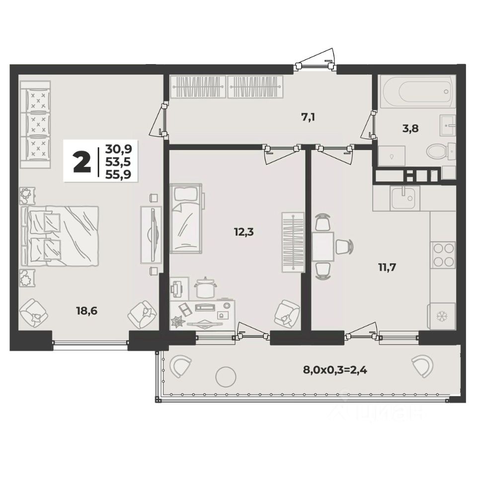 Продаётся 2-комнатная квартира в сданном доме (Литер 1.2), срок сдачи: IV-кв. 2024, общей площадью 55.9 кв.м., на 9 этаже. Новый жилой комплекс "Лето" от застройщика "ГК Дарстрой" расположен по адресу город Краснодар, улица Западный Обход.
