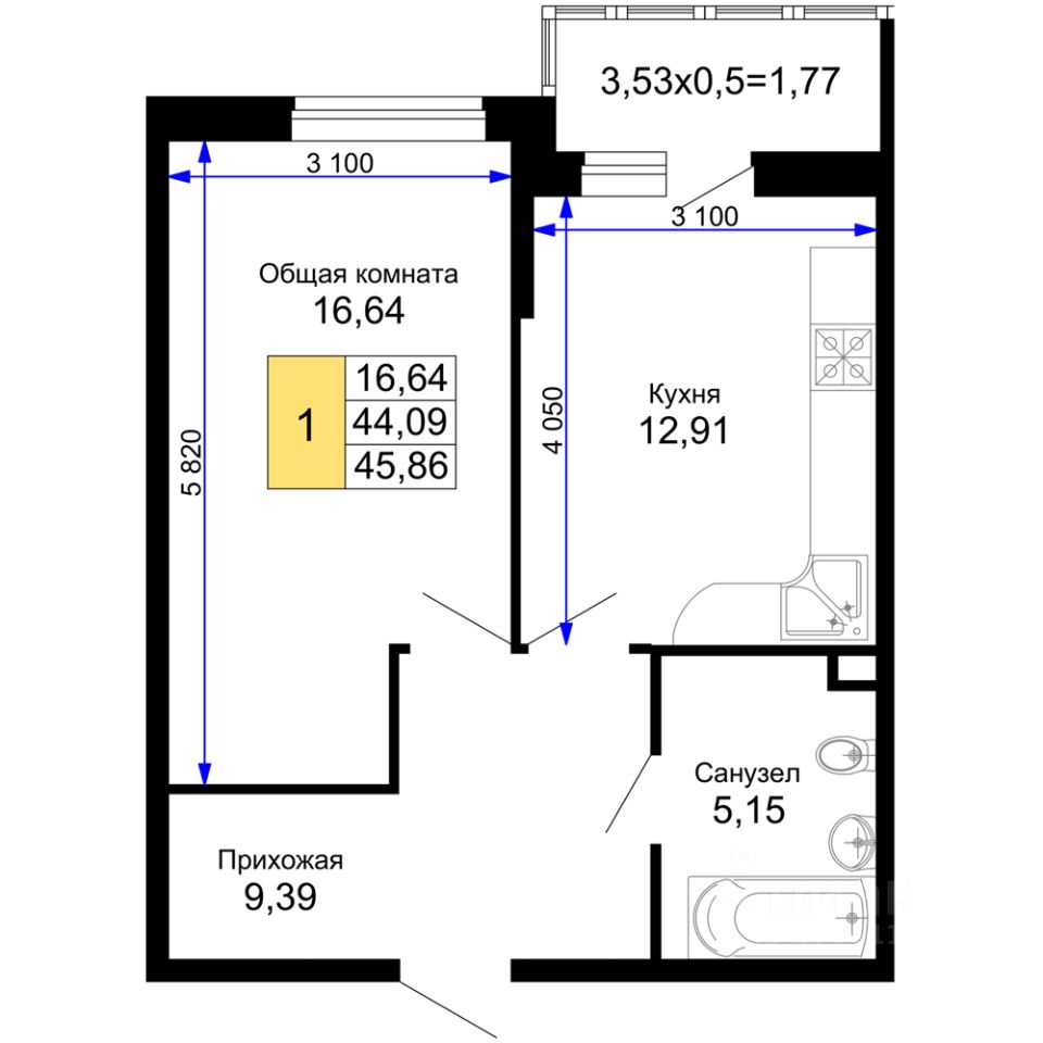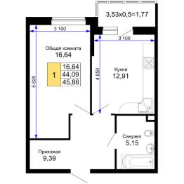 Продаётся 1-комнатная квартира в строящемся доме (Литер 10), срок сдачи: IV-кв. 2025, общей площадью 45.86 кв.м., на 4 этаже. Ипотека от 5,9% на квартиры от ССК на весь срок кредитования