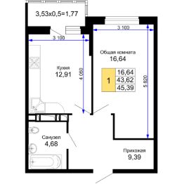 Продаётся 1-комнатная квартира в строящемся доме (Литер 10), срок сдачи: IV-кв. 2025, общей площадью 45.39 кв.м., на 5 этаже. Ипотека от 5,9% на квартиры от ССК на весь срок кредитования