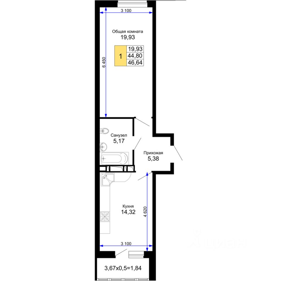 Продаётся 1-комнатная квартира в строящемся доме (Литер 10), срок сдачи: IV-кв. 2025, общей площадью 46.64 кв.м., на 12 этаже. Ипотека от 5,9% на квартиры от ССК на весь срок кредитования