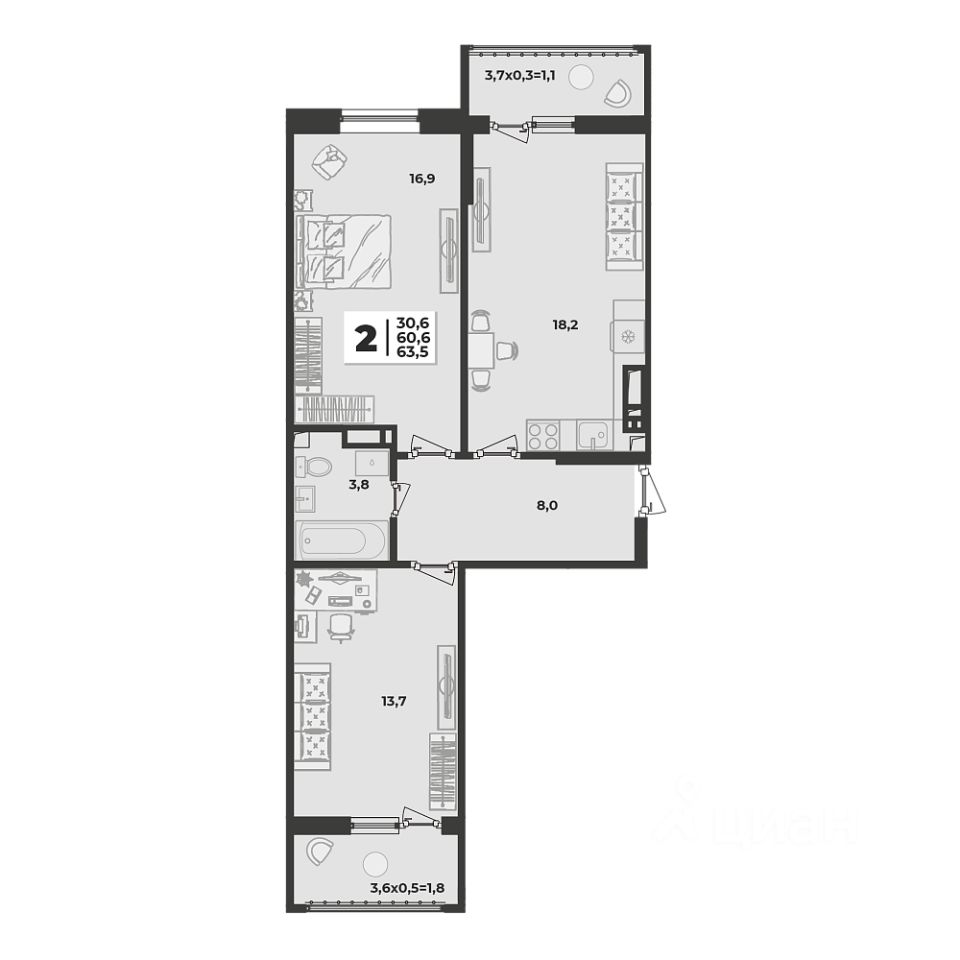 Продаётся 2-комнатная квартира в сданном доме (Литер 1.7), срок сдачи: III-кв. 2025, общей площадью 63.5 кв.м., на 9 этаже. Новый жилой комплекс "Лето" от застройщика "ГК Дарстрой" расположен по адресу город Краснодар, улица Западный Обход.