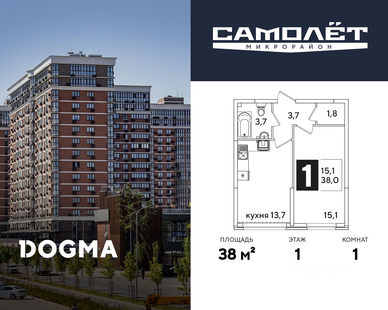 DOGMA - ТОП-3 застройщик по объему строительства в РФ. "САМОЛЁТ" — концептуальный жилой микрорайон, который расположен на северо-западе Краснодара, в районе Западного Обхода. Квартал спроектирован как "город в городе", поэтому здесь будет всё для комфортной жизни: современные дома с разными планировками, дороги, школы и детские сады, поликлиника, торговые центры, парки и аллеи. Микрорайон находится далеко от промышленных предприятий, сочетает удобство городской жизни и экологически благоприятную среду. Инфраструктура нового микрорайона: • 4 школы и 9 детских садов на территории микрорайона • Функциональные планировки • Собственный бульвар протяжённостью 1,6км • Светомузыкальный фонтан протяжённостью 55 метров • Амфитеатр • Парк 7 ГА • Скейт-парк • Детская аква-площадка • Круглосуточное видеонаблюдение и пост охраны Приобрести квартиру можно одним из способов: ипотека, рассрочка, наличный расчет.