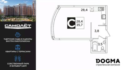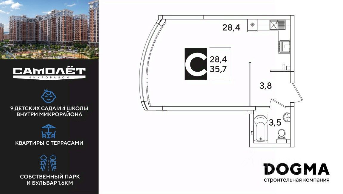DOGMA - ТОП-3 застройщик по объему строительства в РФ. "САМОЛЁТ" — концептуальный жилой микрорайон, который расположен на северо-западе Краснодара, в районе Западного Обхода. Квартал спроектирован как "город в городе", поэтому здесь будет всё для комфортной жизни: современные дома с разными планировками, дороги, школы и детские сады, поликлиника, торговые центры, парки и аллеи. Микрорайон находится далеко от промышленных предприятий, сочетает удобство городской жизни и экологически благоприятную среду. Инфраструктура нового микрорайона: • 4 школы и 9 детских садов на территории микрорайона • Функциональные планировки • Собственный бульвар протяжённостью 1,6км • Светомузыкальный фонтан протяжённостью 55 метров • Амфитеатр • Парк 7 ГА • Скейт-парк • Детская аква-площадка • Круглосуточное видеонаблюдение и пост охраны Приобрести квартиру можно одним из способов: ипотека, рассрочка, наличный расчет.
