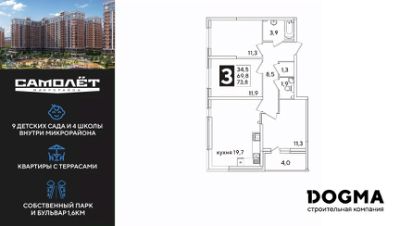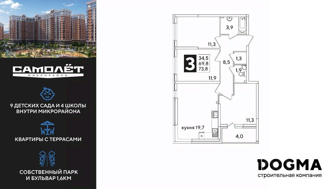 DOGMA - ТОП-3 застройщик по объему строительства в РФ. "САМОЛЁТ" — концептуальный жилой микрорайон, который расположен на северо-западе Краснодара, в районе Западного Обхода. Квартал спроектирован как "город в городе", поэтому здесь будет всё для комфортной жизни: современные дома с разными планировками, дороги, школы и детские сады, поликлиника, торговые центры, парки и аллеи. Микрорайон находится далеко от промышленных предприятий, сочетает удобство городской жизни и экологически благоприятную среду. Инфраструктура нового микрорайона: • 4 школы и 9 детских садов на территории микрорайона • Функциональные планировки • Собственный бульвар протяжённостью 1,6км • Светомузыкальный фонтан протяжённостью 55 метров • Амфитеатр • Парк 7 ГА • Скейт-парк • Детская аква-площадка • Круглосуточное видеонаблюдение и пост охраны Приобрести квартиру можно одним из способов: ипотека, рассрочка, наличный расчет.