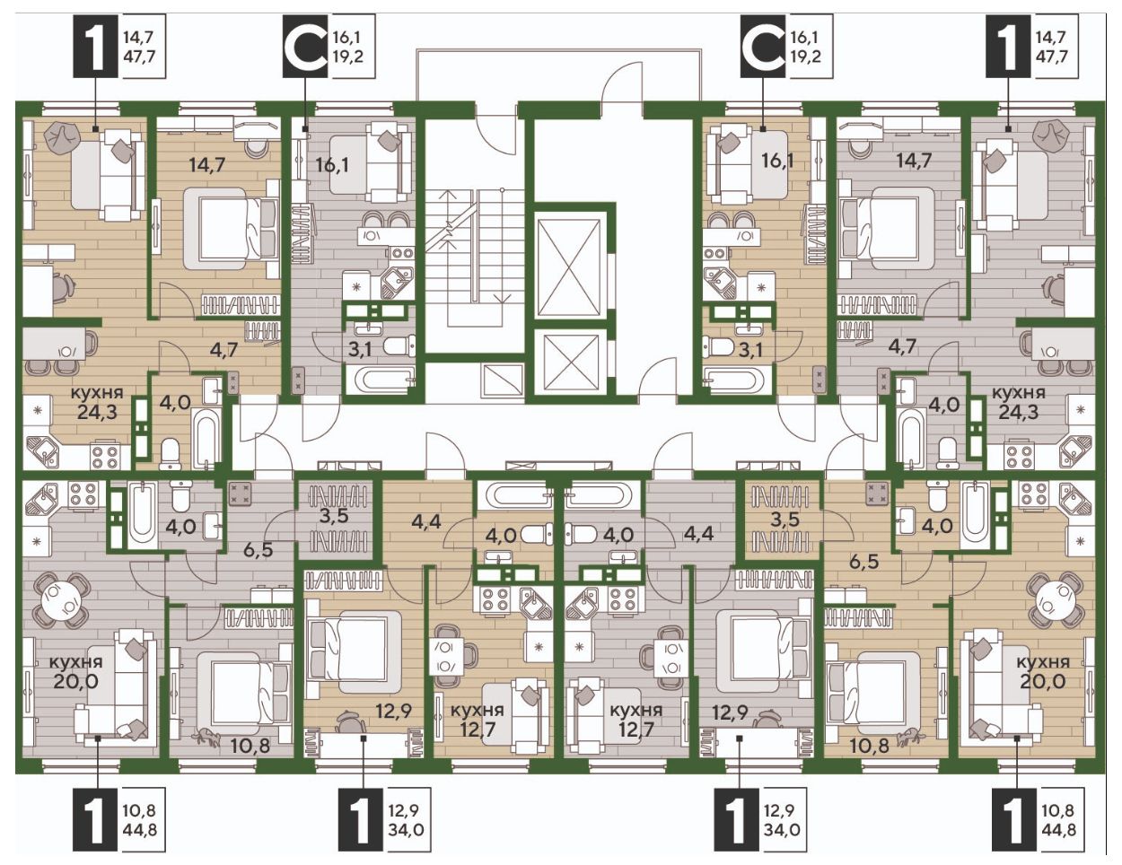 В продаже 1-комнатная квартира от застройщика! Мкр. "DOGMA PARK" г. Краснодар, Литер 19 Срок сдачи: 4 кв. 2027, общей площадью 47.3 кв.м., на 12 этаже.