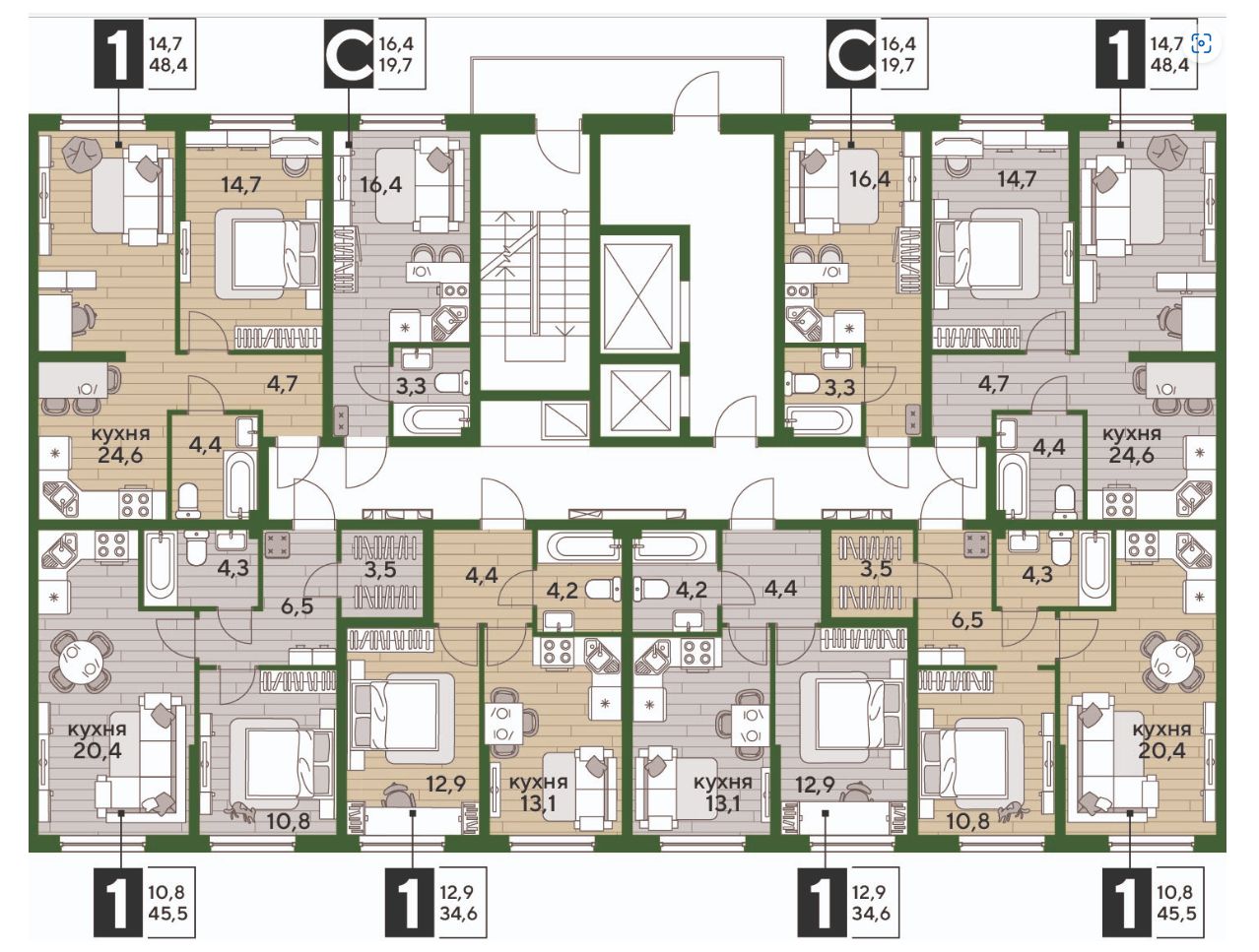 В продаже 1-комнатная квартира от застройщика! Мкр. "DOGMA PARK" г. Краснодар, Литер 19 Срок сдачи: 4 кв. 2027, общей площадью 44.6 кв.м., на 2 этаже.
