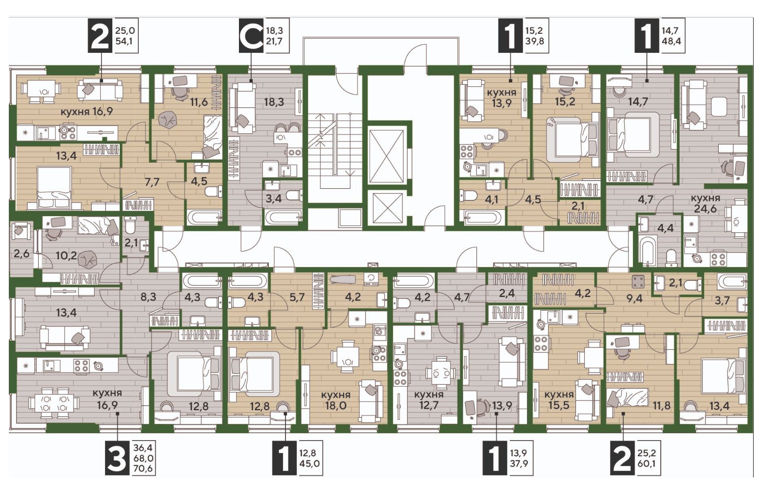 В продаже 3-комнатная квартира от застройщика! Мкр. "DOGMA PARK" г. Краснодар, Литер 19 Срок сдачи: 4 кв. 2027, общей площадью 69.3 кв.м., на 2 этаже.