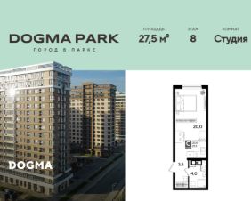 В продаже квартира-студия от застройщика! Мкр. "DOGMA PARK" г. Краснодар, Литер 16 Срок сдачи: 4 кв. 2027, общей площадью 27.5 кв.м., на 8 этаже.