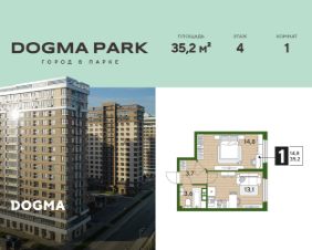 В продаже 1-комнатная квартира от застройщика! Мкр. "DOGMA PARK" г. Краснодар, Литер 24 Срок сдачи: 4 кв. 2027, общей площадью 35.2 кв.м., на 4 этаже.