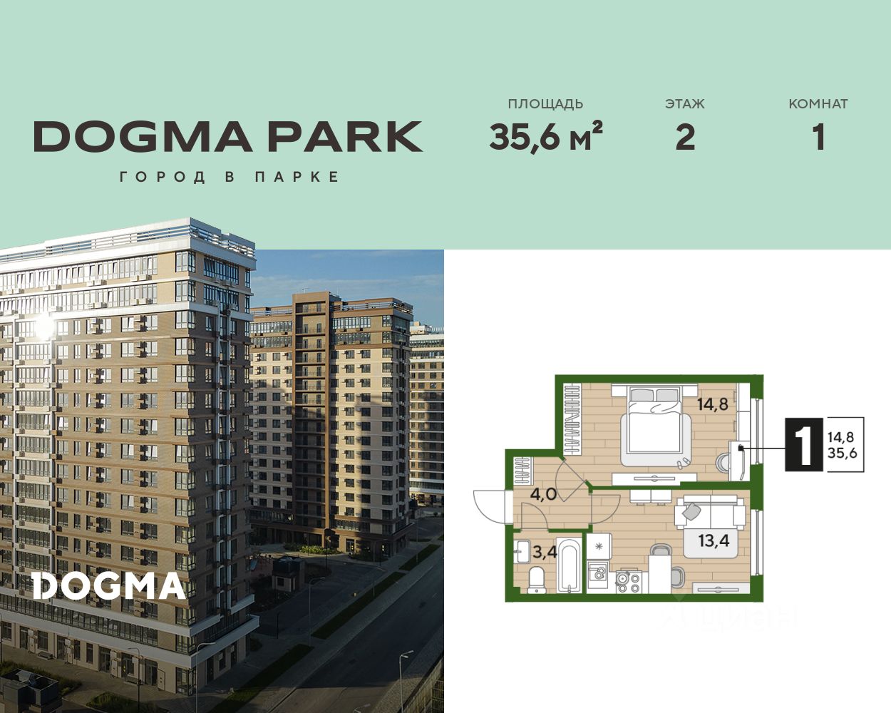 В продаже 1-комнатная квартира от застройщика! Мкр. "DOGMA PARK" г. Краснодар, Литер 24 Срок сдачи: 4 кв. 2027, общей площадью 35.6 кв.м., на 2 этаже.