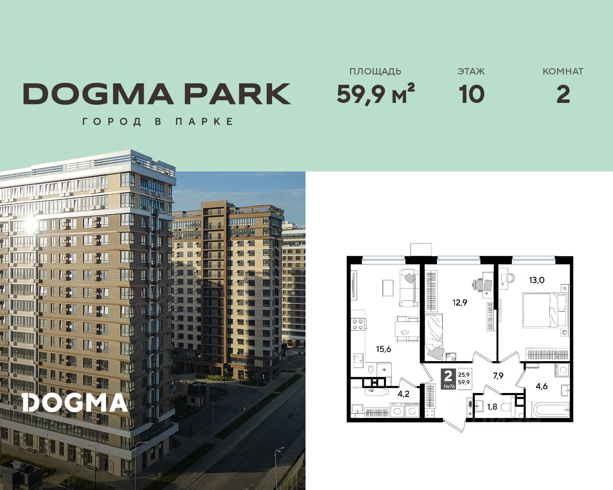 В продаже 2-комнатная квартира от застройщика! Мкр. "DOGMA PARK" г. Краснодар, Литер 13 Срок сдачи: 4 кв. 2027, общей площадью 59.9 кв.м., на 10 этаже.