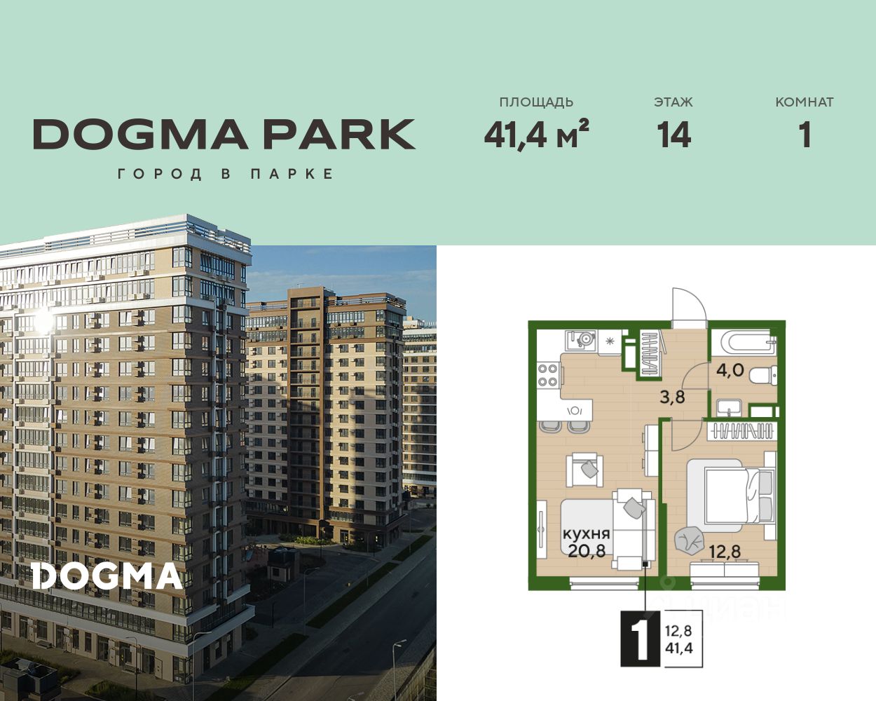 В продаже 1-комнатная квартира от застройщика! Мкр. "DOGMA PARK" г. Краснодар, Литер 18 Срок сдачи: 4 кв. 2027, общей площадью 41.4 кв.м., на 14 этаже.