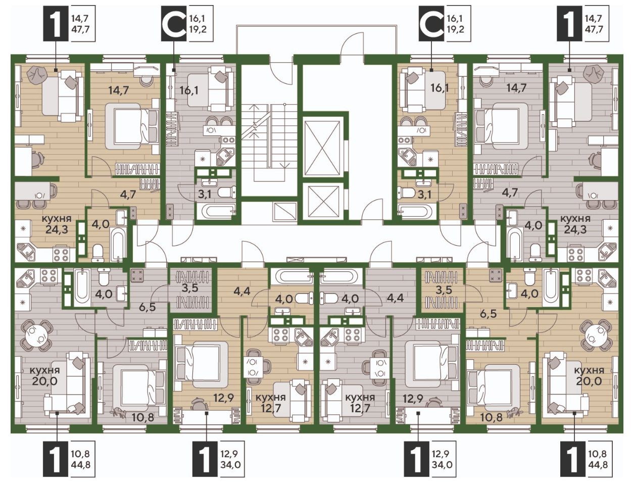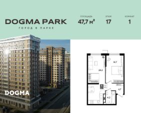 В продаже 1-комнатная квартира от застройщика! Мкр. "DOGMA PARK" г. Краснодар, Литер 14 Срок сдачи: 4 кв. 2027, общей площадью 47.7 кв.м., на 17 этаже.