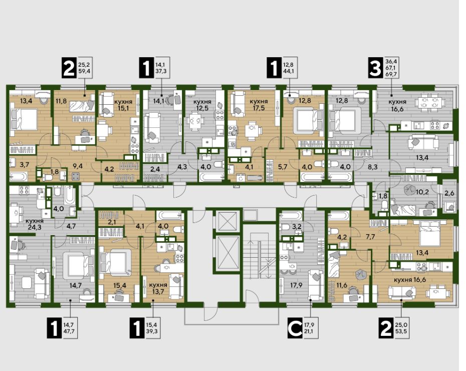В продаже 2-комнатная квартира от застройщика! Мкр. "DOGMA PARK" г. Краснодар, Литер 20 Срок сдачи: 4 кв. 2027, общей площадью 59.4 кв.м., на 11 этаже.