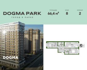 В продаже 2-комнатная квартира от застройщика! Мкр. "DOGMA PARK" г. Краснодар, Литер 22 Срок сдачи: 4 кв. 2027, общей площадью 66.4 кв.м., на 8 этаже.