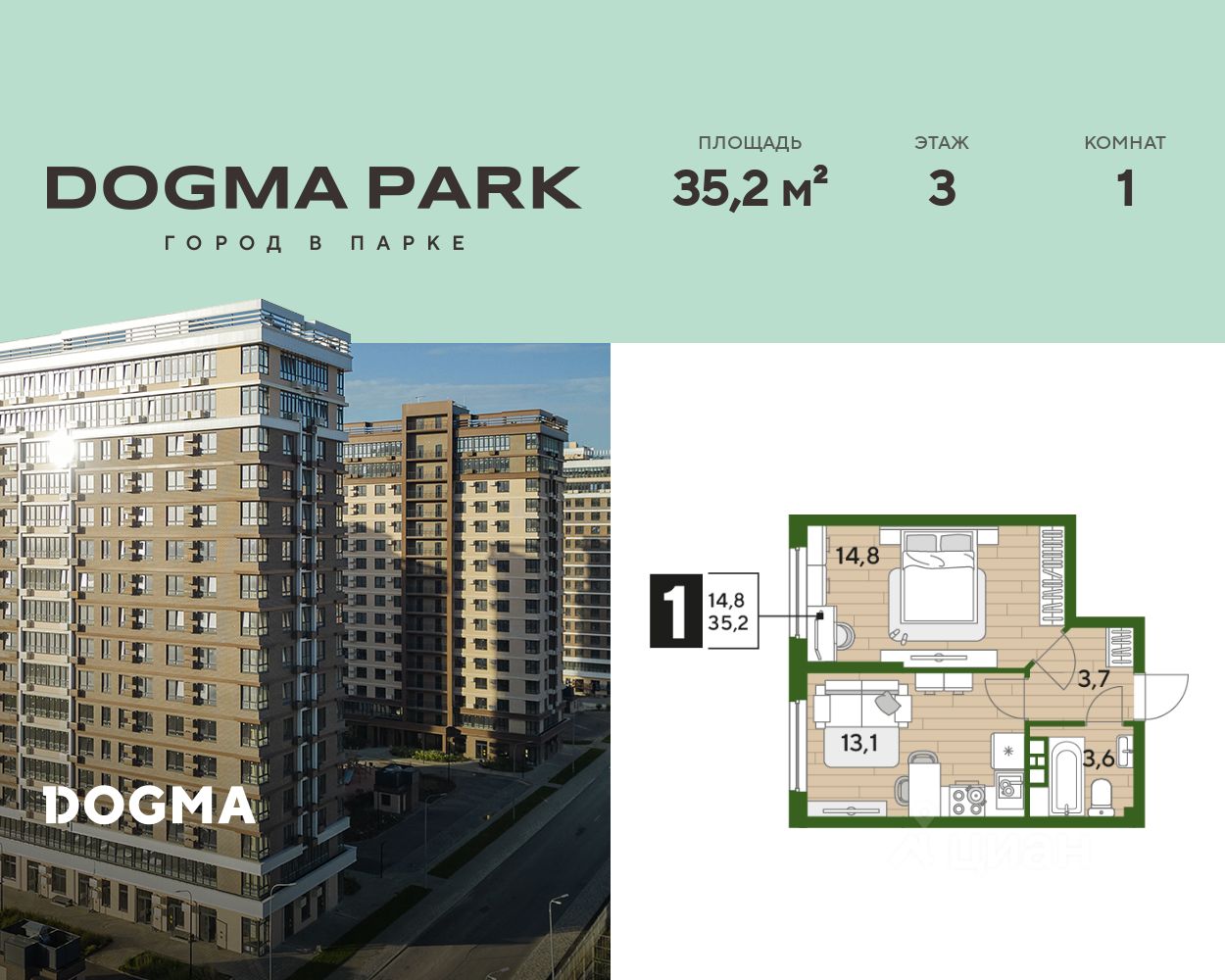 В продаже 1-комнатная квартира от застройщика! Мкр. "DOGMA PARK" г. Краснодар, Литер 22 Срок сдачи: 4 кв. 2027, общей площадью 35.2 кв.м., на 3 этаже.