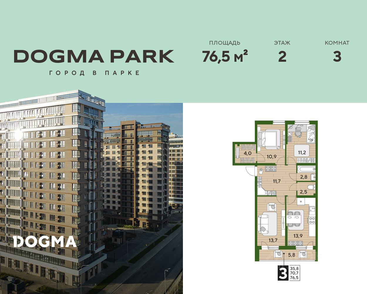 В продаже 3-комнатная квартира от застройщика! Мкр. "DOGMA PARK" г. Краснодар, Литер 22 Срок сдачи: 4 кв. 2027, общей площадью 76.5 кв.м., на 2 этаже.