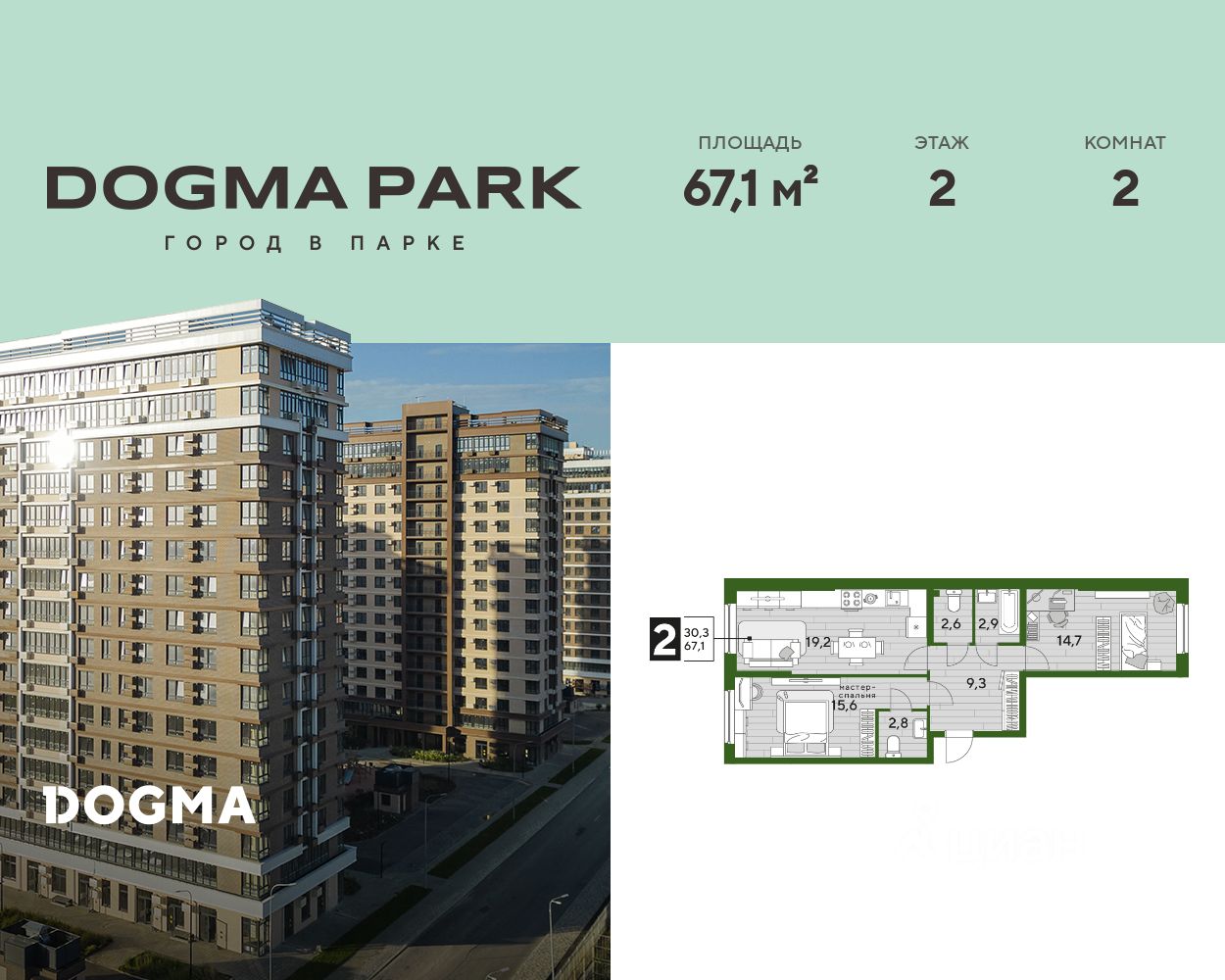 В продаже 2-комнатная квартира от застройщика! Мкр. "DOGMA PARK" г. Краснодар, Литер 21 Срок сдачи: 4 кв. 2027, общей площадью 67.1 кв.м., на 2 этаже.