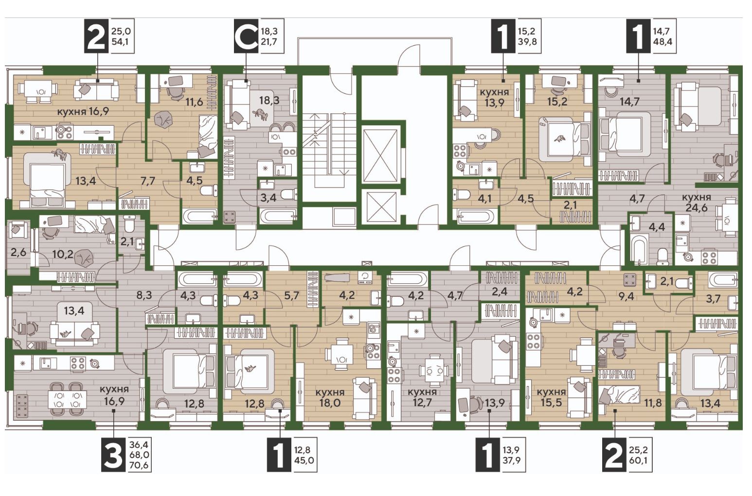 В продаже 2-комнатная квартира от застройщика! Мкр. "DOGMA PARK" г. Краснодар, Литер 21 Срок сдачи: 4 кв. 2027, общей площадью 60.1 кв.м., на 2 этаже.