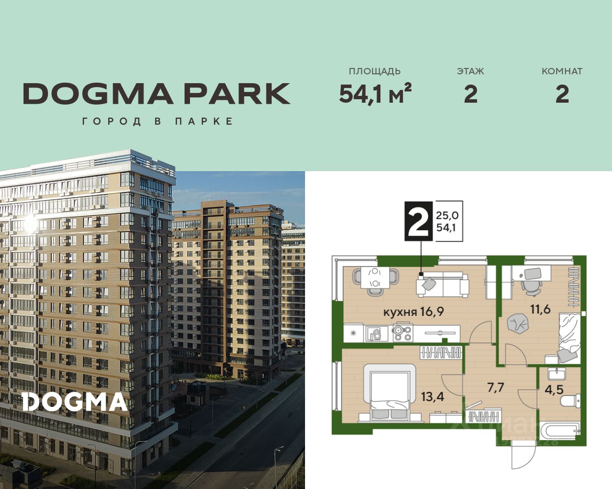 В продаже 2-комнатная квартира от застройщика! Мкр. "DOGMA PARK" г. Краснодар, Литер 23 Срок сдачи: 4 кв. 2027, общей площадью 54.1 кв.м., на 2 этаже.